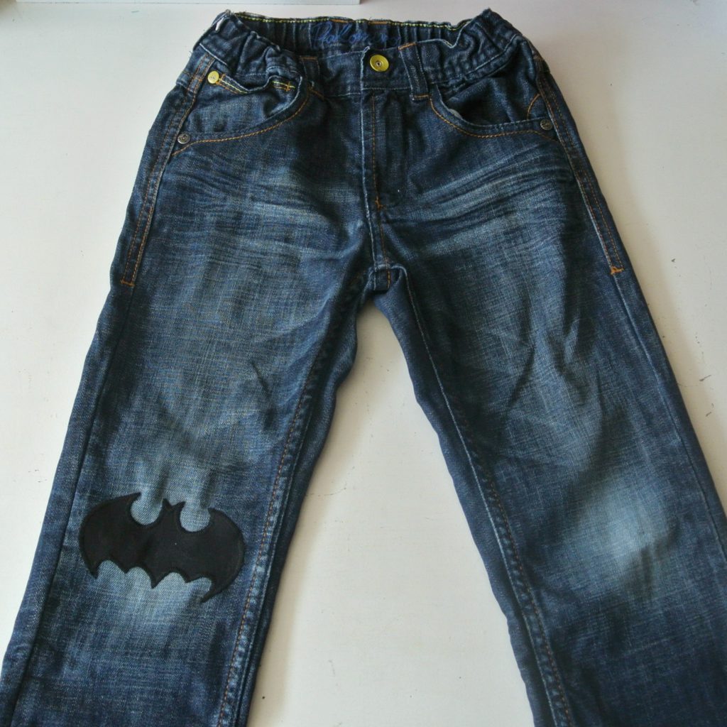 Wil je met de naaimachine naaien, dan kun je er soms niet bij, bijvoorbeeld bij de knieën van een lange broek. Je kunt in dat geval de zijnaad van de broekspijpen met een tornmesje voorzichtig openmaken. Daarna naai je de applicatie vast en als laatste naai je de zijnaad weer netjes dicht over de plaats van het originele stiksel.
