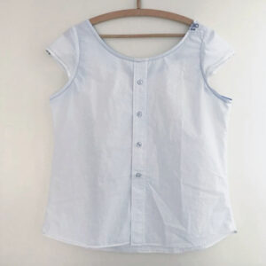 Als het oude overhemd dat je hebt redelijk goed past qua maat, dan kun je ervoor kiezen om alleen de mouwen eraf te halen en de halslijn uit te knippen. De armsgaten en hals werk je netjes af, en de pasvorm kun je nog veranderen door de stof aan de zijkant een beetje in te nemen.