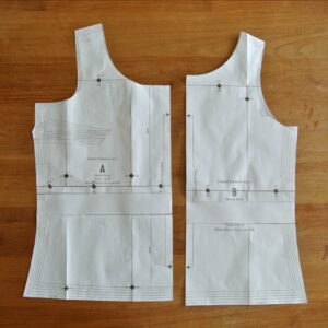 Nu je de patroondelen hebt uitgeknipt kun je de Top naaien volgens het patroon dat je gebruikt. Ik gebruik hier het Sorbetto Top naaipatroon van Seamwork (Je kunt hem gratis downloaden via HIER).