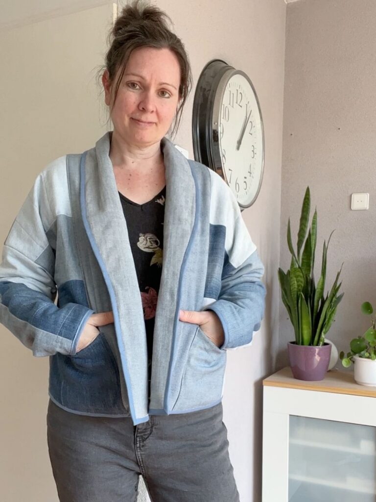 Al met al is het een leuk jasje geworden! Al is hij toch misschien een beetje te warm als tussendoor-jas. De volgende keer zou ik een dunnere stof uitkiezen voor de buitenkant van de jas. Óf ik zou de quiltvoering achterwegen laten.