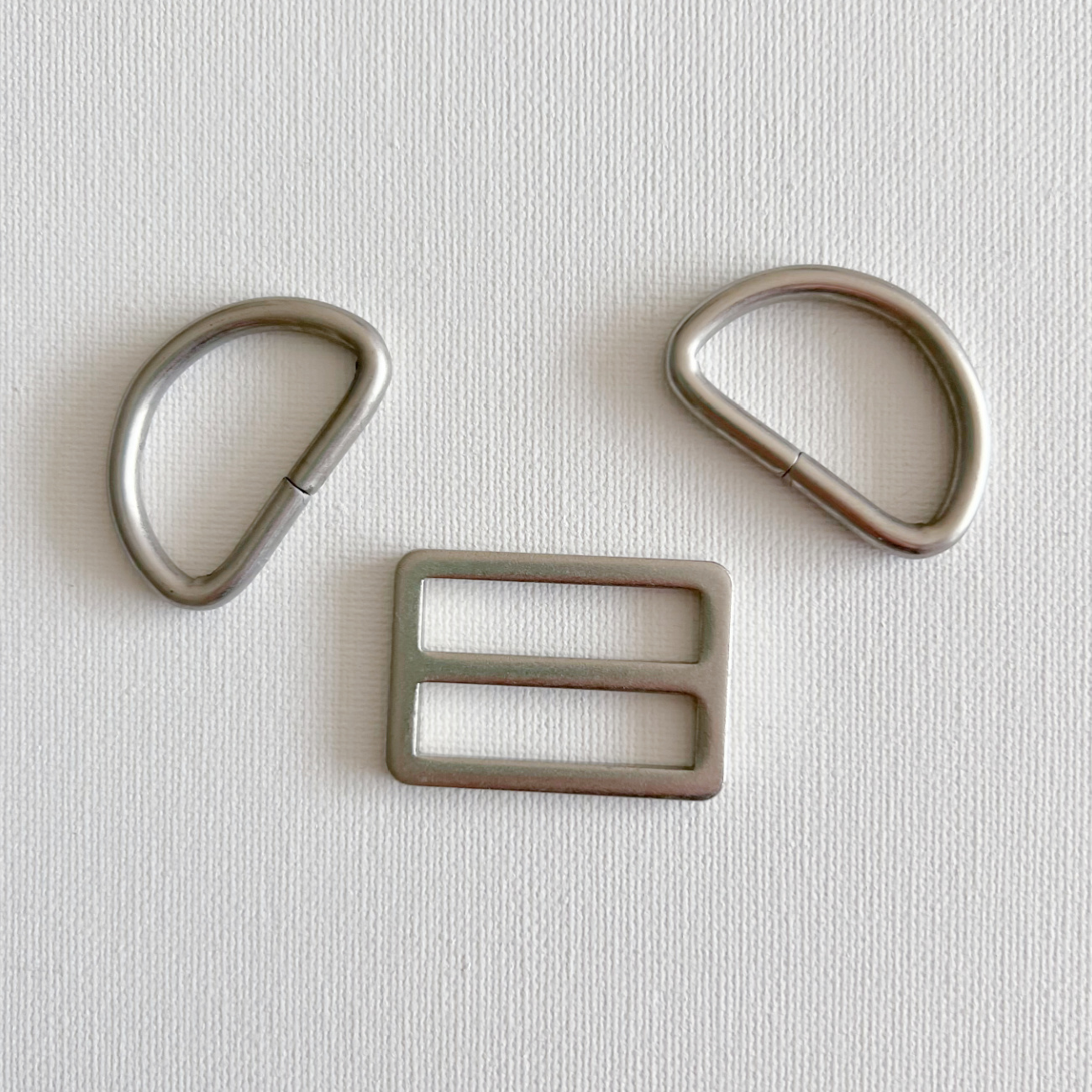 Je ontvangt 2 D-ringen en 1 dubbele gesp.